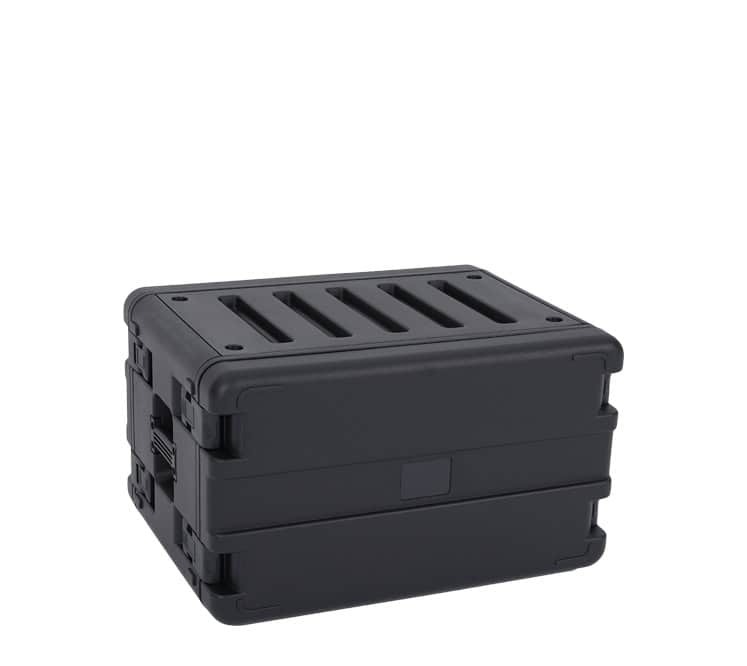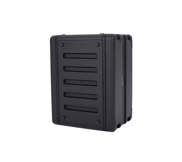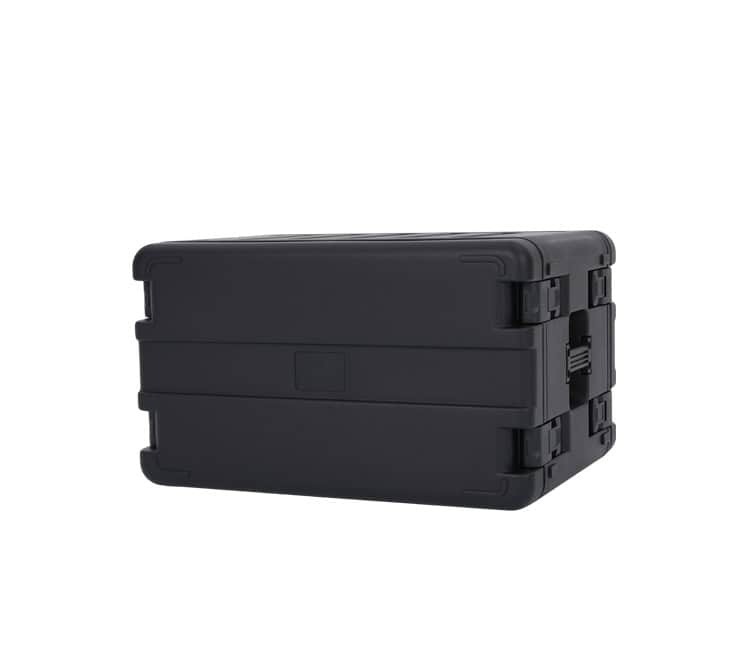 These Rack cases are injection molded and have gasket sealed front and rear lids to prevent water ingress. Other features include recessed heavy duty handles and double throw firm latches and stacking provision.